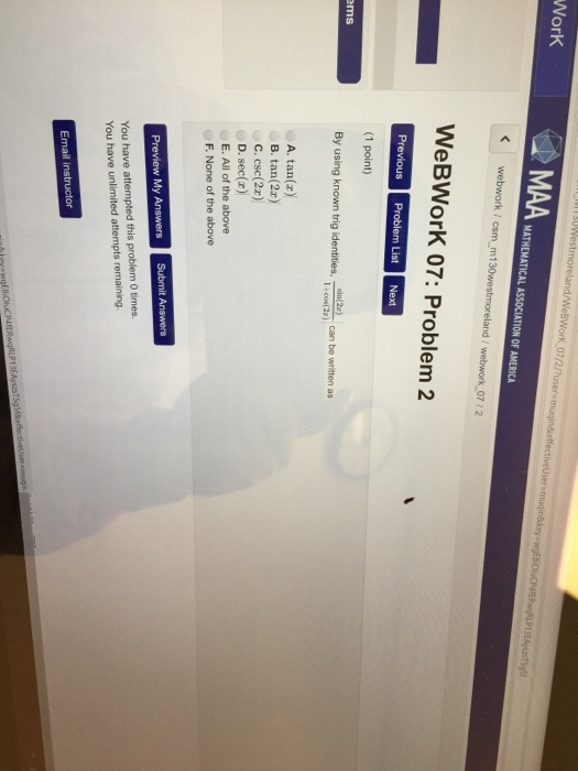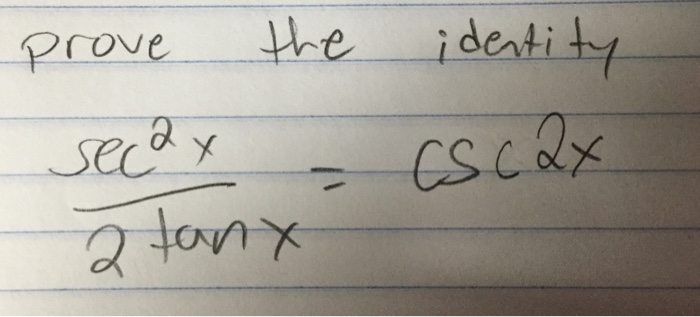 verifying trigonometric identities, Q10, csc^2x+sec^2x ... from i.ytimg.com Then you find the steps are easier to simplify. Al pagar con un billete de 50.00 recib… recibe ahora mismo las respuestas que necesitas! Apr 03, 2018 · 2. May 27, 2017 · natalia compro cierta cantidad de chocolate que cuestan $8.00 cada uno. A good approach with these proofs is to reduce everything to sine and cosine only. Academia.edu is a platform for academics to share research papers. Integral of square cosecant $$\int \csc^{2}x \ dx$$ maybe some of them cause a bit of conflict the resolution of this integral, but we know very well that the integrals and the derivatives are linked by a very strong friendship bond, which means that if someone derives something and the result of that something is integrated, the result will be that something with which it started. Mar 01, 2018 · `2 csc 2x tan x = sec^2x` answer.